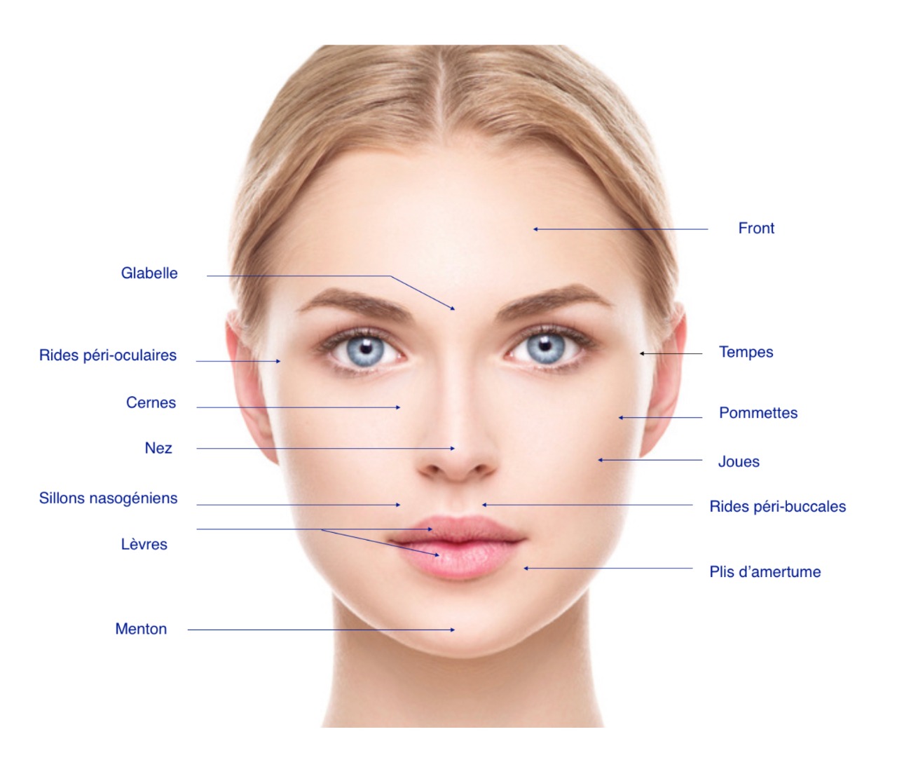 plis d’amertume (rides de chaque côté de la bouche). Il est également possible de procéder à des injections au niveau de la ride du lion (entre les sourcils), de la patte d’oie (le coin externe de l’œil) et sur les